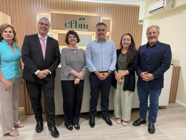 Na última quarta (28), o presidente do Conselho Federal de Biomedicina  (CFBM), dr. Edgar Garcez Junior, e o dr. Marco Antonio Zonta, conselheiro, receberam na sede da autarquia, em Brasília (DF), representantes de entidades de análises clínicas para discutir ações para a divulgação da Política Nacional de Diagnóstico Laboratorial (PNDL) e o PL 5478/2025, que trata do tema.