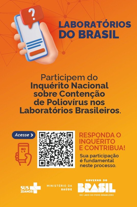 O Ministério da Saúde convida os laboratórios públicos, privados e instituições de pesquisa que possam armazenar ou manipular amostras contendo poliovírus – seja o vírus selvagem ou vacinal – a responder ao inquérito on-line (link abaixo).